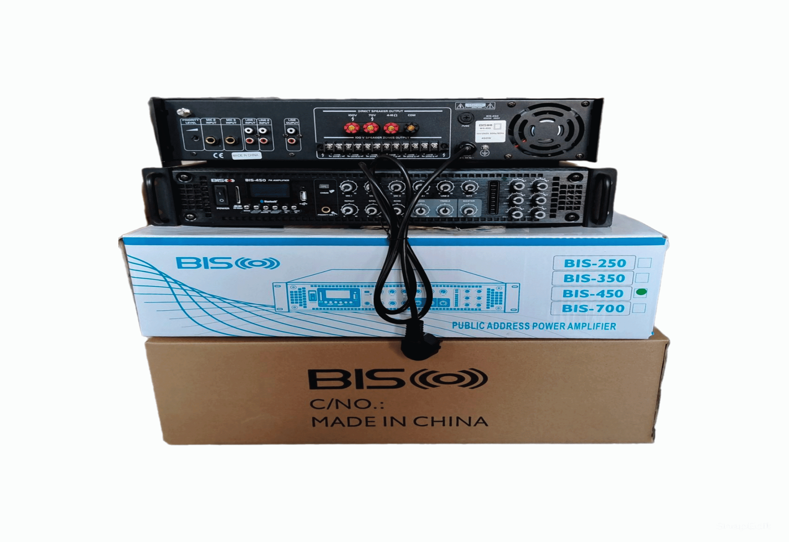 آمپلی فایر مرکزی بیسکو مدل BIS450 دارای رک‌ مونت با توان خروجی حداکثری 450 وات، دارای امکاناتی نظیر اکولایزر برای تنظیم میزان زیر و بم صدا، درگاه ورودی USB و 6 عدد ولوم سلکتوری برای تنظیم صدا در فضاهای انتخابی است. به طور کلی آمپلی‌فایر یکی از مهم‌ترین اجزای سیستم صوتی است که بین ورودی و خروجی سیگنال‌های صوتی قرار می‌گیرد. سیگنال‌های صوتی که پس از ورود به میکروفون یا دیگر ورودی‌ها مثل ورودی‌های گیتار یا دیگر ساز‌ها، کمی تضعیف شده‌اند، وارد آمپلی‌فایر شده و به طور همزمان تن و حجم آنها افزایش پیدا می‌کند. بنابراین آمپلی‌فایر از ضروری‌ترین اجزای سیستم صوتی برای تولید صدای با‌کیفیت به شمار می‌رود. اگر شما به دنبال خرید آمپلی‌فایر هستید، آمپلی فایر مرکزی بیسکو مدل BISCO-BIS450 بهترین گزینه برای شماست